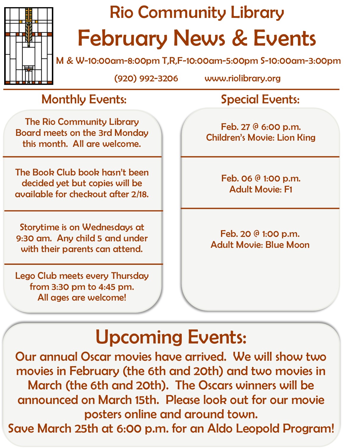 Our Library newsletter can be found here.